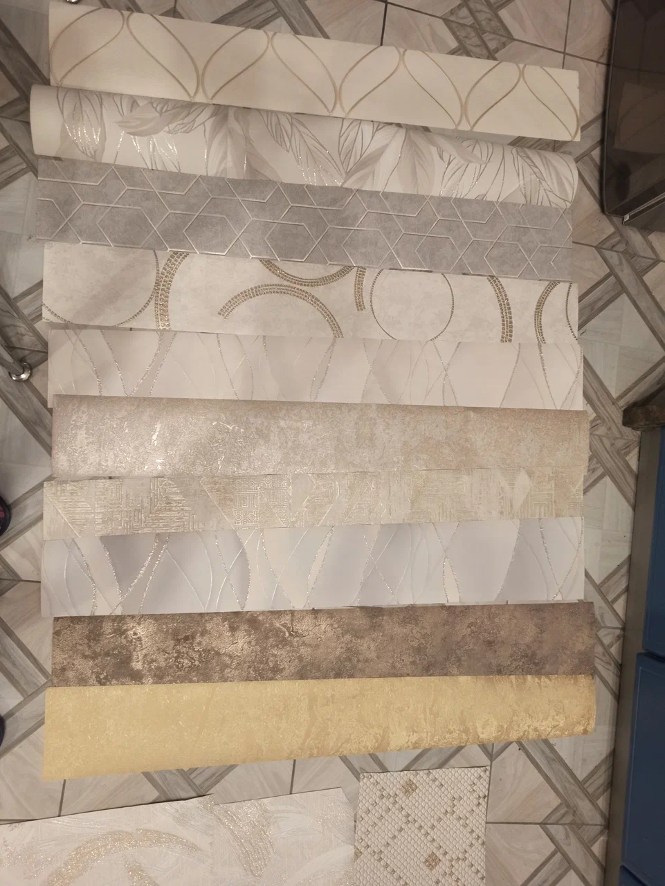 Большой выбор обоев, почти всё образцы приклеены на спец.платформы для демонстрации. Цены на разный кошелёк, но в основном цены 2-2,5 т.р. Можно взять кусочек обоев с собой, но узкий (примерно 15см). Народа не много, продавцы отзывчивые и в зале их несколько человек. Минус звезда - для некоторых рисунков обоев требуется больше чем ширина 15см, чтобы прикинуть дома как будет смотреться.
