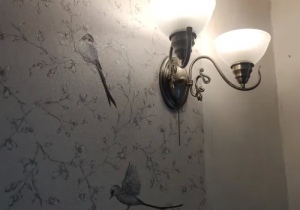 Дополняю отзыв . Ещё не доклеили. Очень нравятся в качестве акцентной стены на кухне,сочетаются с серым, серо- голубым, синим, бирюзовым оттенками. Холодными оттенками. Хотя, на первый взгляд, основной фон у обоев кажется бежево - серо-розовый. Зависит от освещения. Но я взяла за основу эти обои и к ним привязывала все остальные оттенки стен. В птичках несколько оттенков,и все они будут хороши в компаньонах рядом.