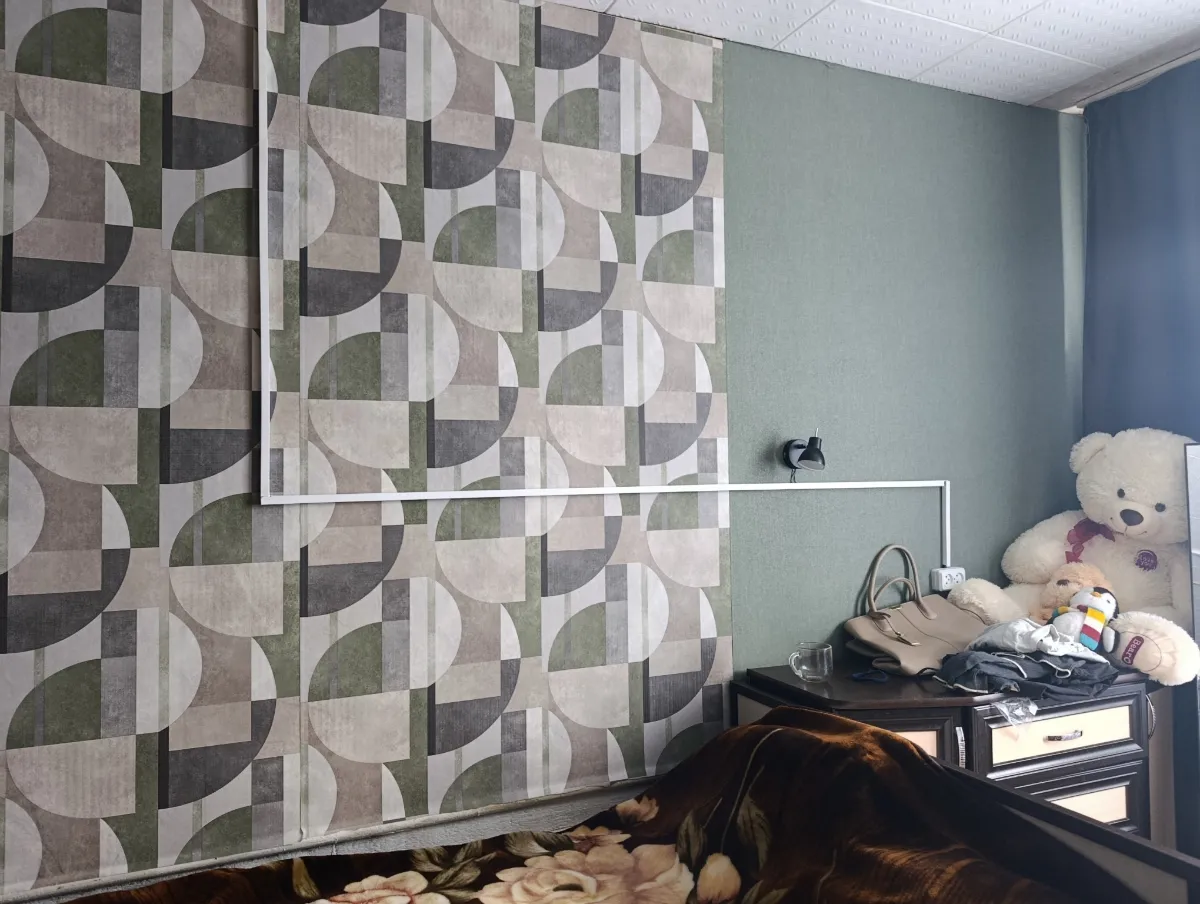 Клеили на несравнимо кривые стены на старые обои. Многие неровности закрыли, но все тут и не закроешь. Сами обои плотные, просто замечательные. Пестрые обои клеили без подгона, ибо не поняли как подгонять))), но выглядит все равно супер.
