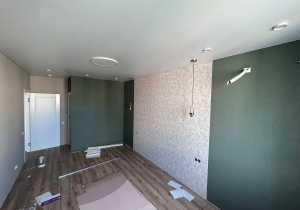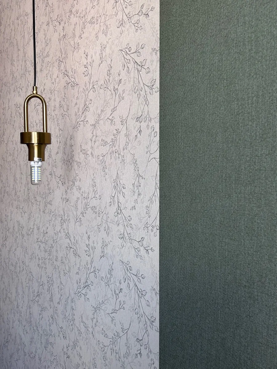 Из трех расцветок: мокко, зеленые и кремовые, зеленые клеились легче всего и стыки получились совсем незаметные (при поклейке внахлест с разрезом). Цвет и фактура - любовь!