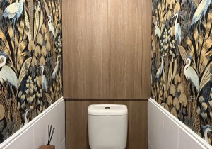 Брала обои для санузла, нужно было минимальными средствами преобразить убитый туалет