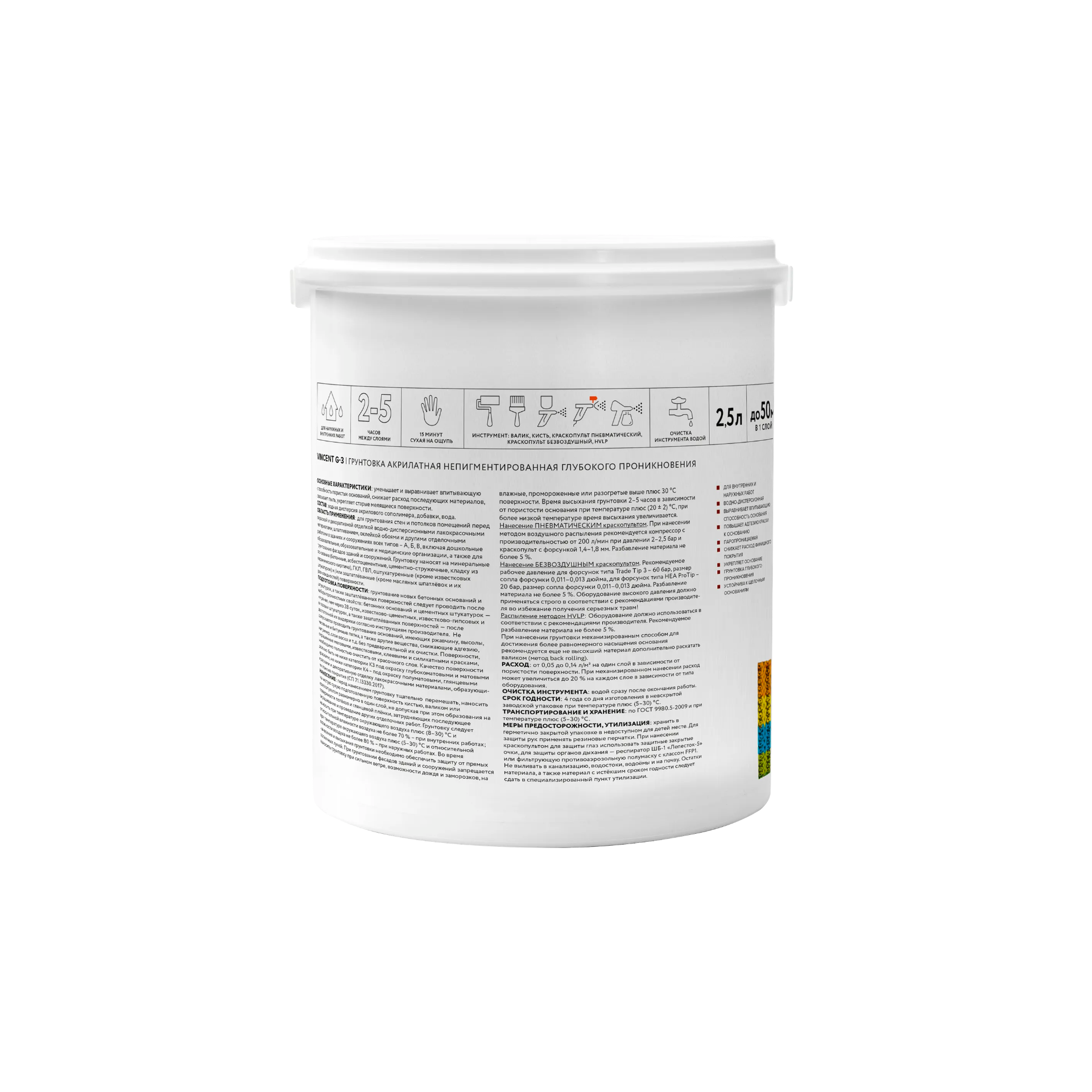 • Время высыхания2 - 5 часов в зависимости от пористости основания при температуре плюс (20 ± 2) °С