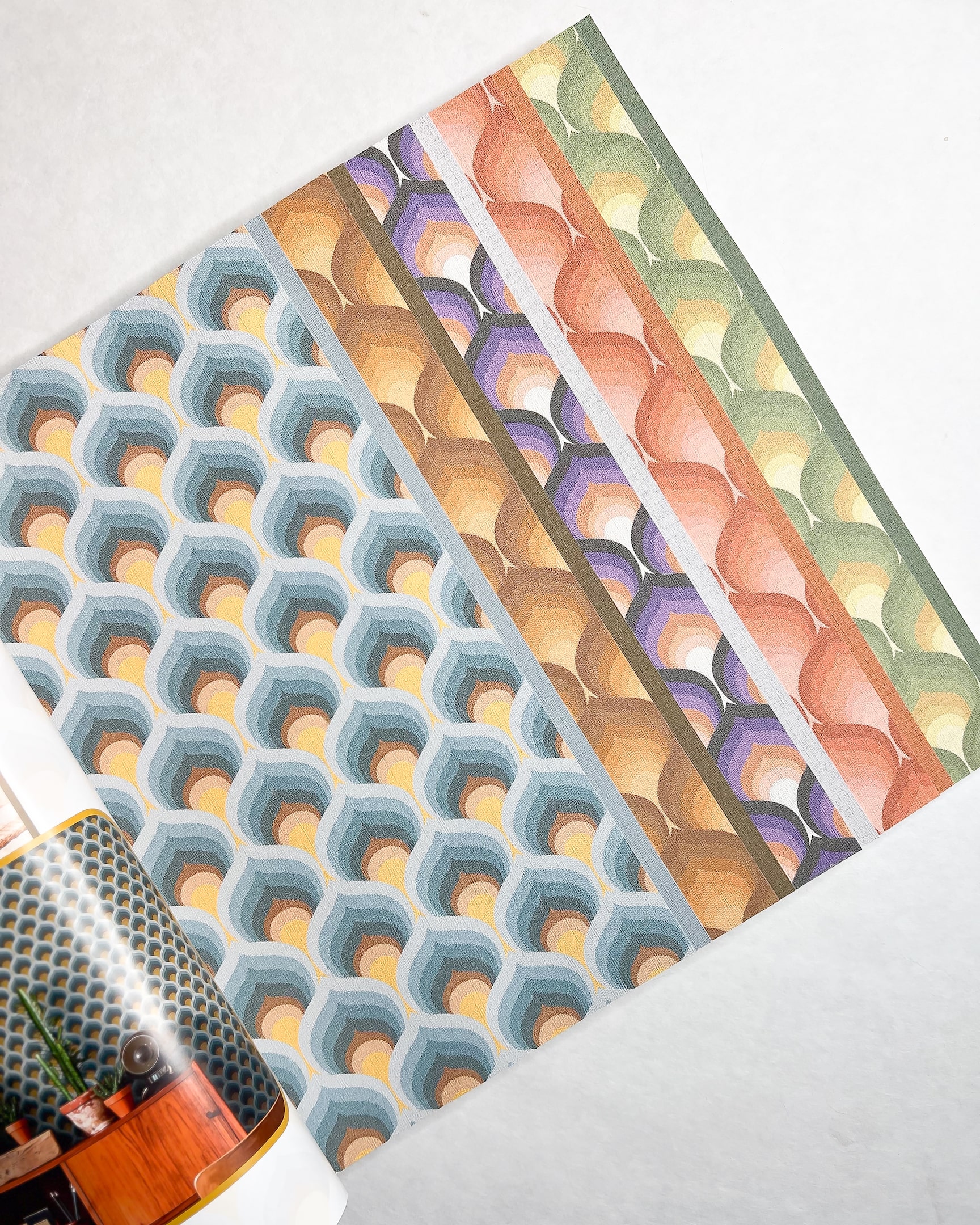 Все любители стилистики 60–70-х могут запускать пластинки и начинать танцевать, ведь у A. S. Creation вышла коллекция идеально подходящая для вашего интерьера. Retro Chic передает атмосферу эпохи с помощью узнаваемых цветовых сочетаний и принтов. Даже если Вы равнодушны к эре хиппи и Beatles, сложно устоять перед жизнерадостной розово-зеленой геометрией и крупными желто-рыжими цветами.