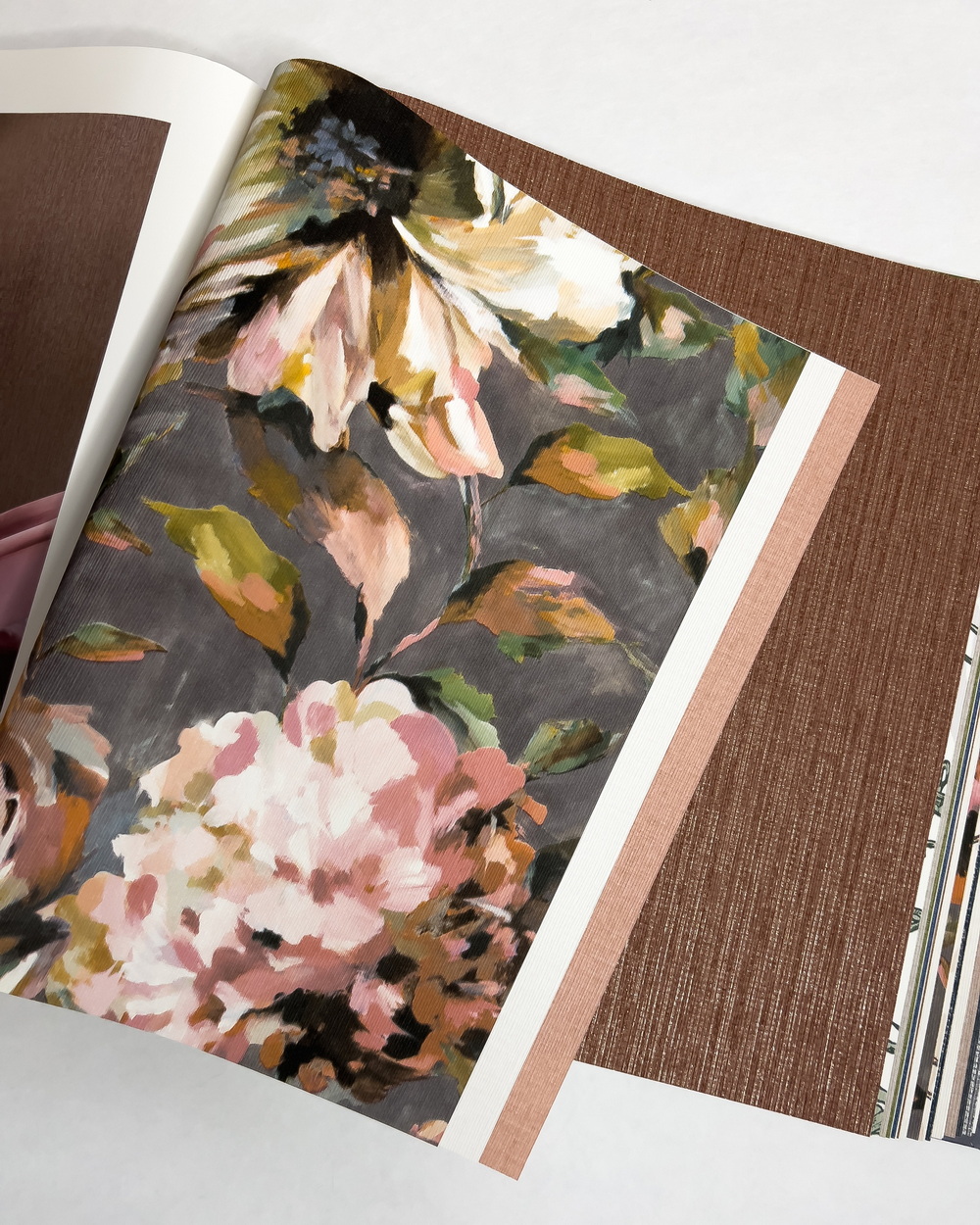 Florentine III — яркая коллекция от Rasch. Заглавный принт каталога — растительный орнамент с крупными листьями. Он напоминает об африканском изобразительном искусстве с его яркими красками и упрощенными силуэтами. Кроме того, в коллекции обосновались бамбуковые заросли и воздушные цветы. Последние два принта можно найти и в коллекции Florentine XL, но уже в метровом формате.