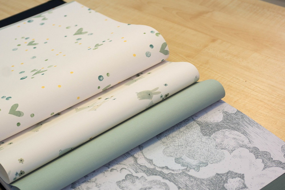 В коллекции от BN International, трусишка-зайчишка прячется за деревьями, многогранники переливаются цветами фруктового льда, а облака нарисованы крупными карандашными штрихами.