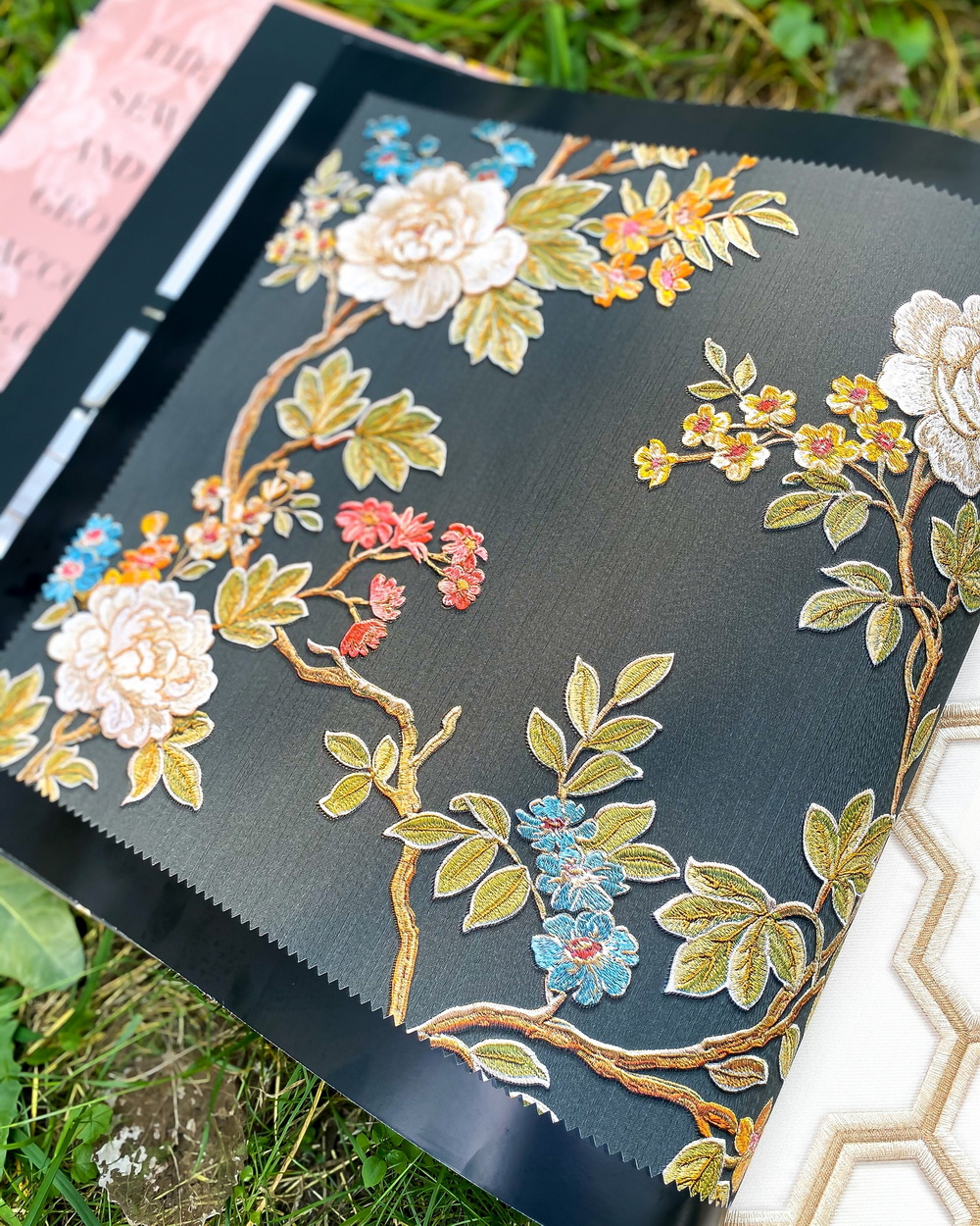 Four Seasons — коллекция обоев с «вышивкой» от Alessandro Allori. Даже при ближайшем рассмотрении, полотна выглядят, как ткань, покрытая изящными стежками. Каталог передает настроение востока, что выражается в цветочном принте а-ля шинуазри и изображении сосновых веточек.