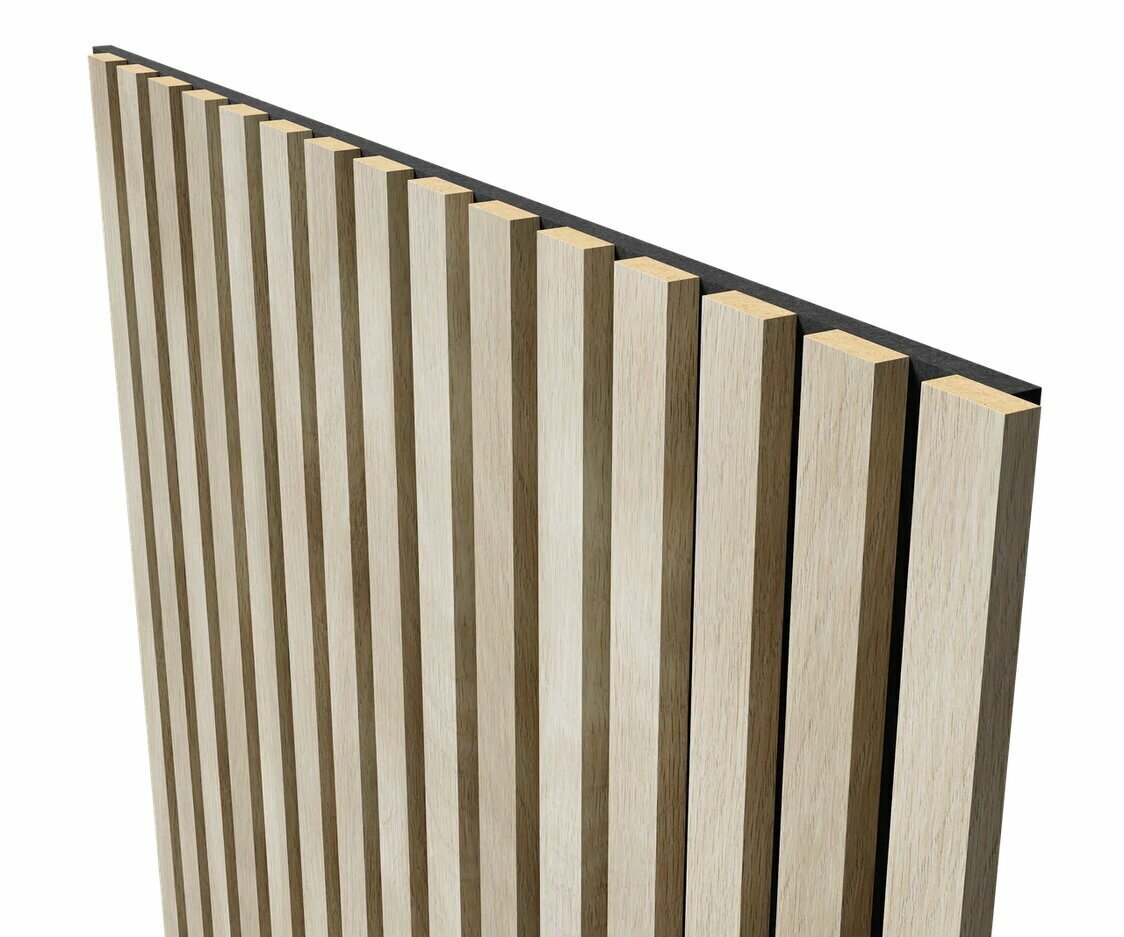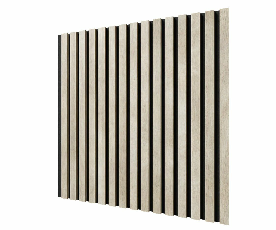 Cosca Акустическая панель, черный войлок, 600х600х19мм, рейки МДФ ясень кристалл