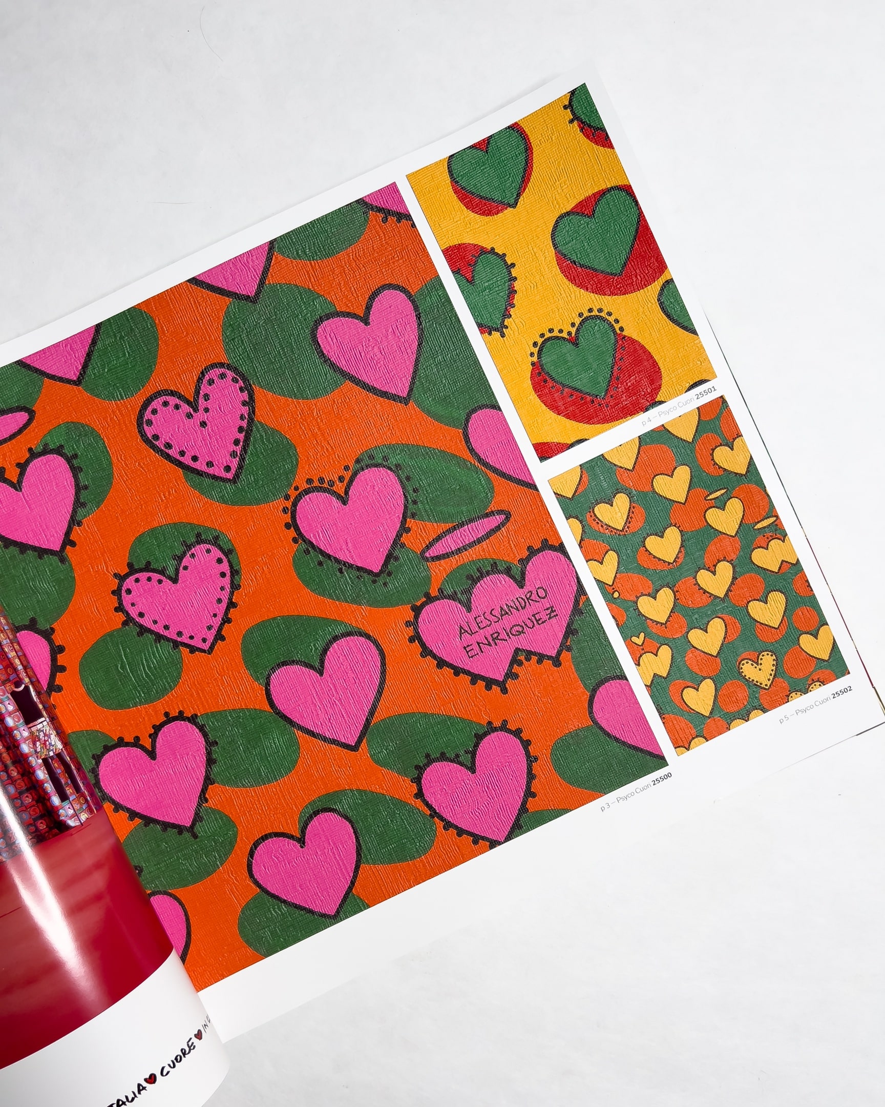Enriquezland — коллекция от итальянского бренда Jannelli & Volpi. Эта эксцентричная новинка подойдет не для каждого интерьера, но, возможно, яркие обои с арбузами, воздушными шарами в виде томатов, львятами в сердцах — именно то, что Вам нужно. Каталог создан в содружестве с итальянским художником Алессандро Энрикезом и буквально пропитан любовью, ведь изображения сердец и надписи Amore мы встретим здесь чаще всего.