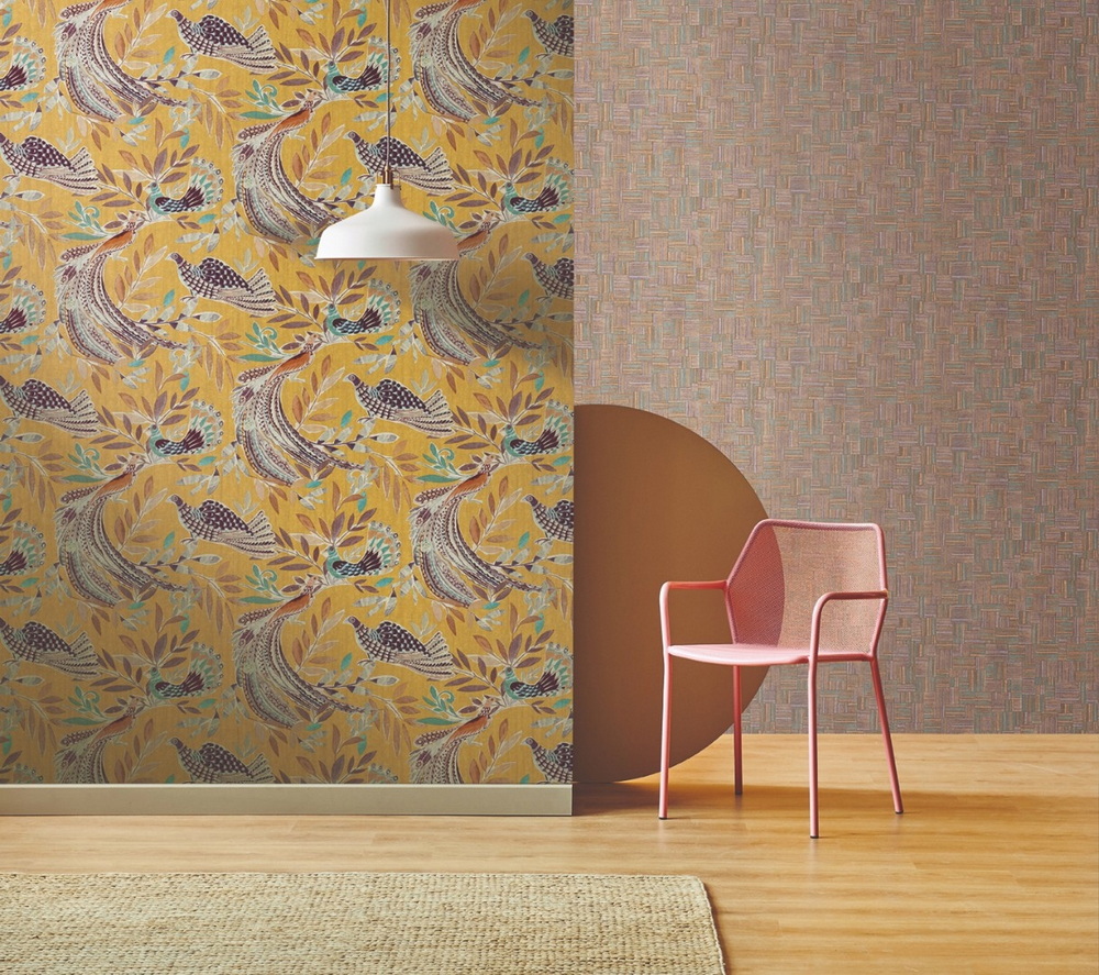 Каталог Paraiso, чье название в переводе с испанского означает «рай», погружает нас мир самобытной мексиканской культуры. Птицы занимают центральное место в коллекции и мифах коренных народов Латинской Америки. Так, священным животным майя и ацтеков был кетцаль — птичка с пестрым окрасом и длинным хвостом. К обоям с рисунком предлагается компаньон с фактурой жатой ткани и «кирпичиками», напоминающими о величественной архитектуре безвозвратно ушедшей эпохи.