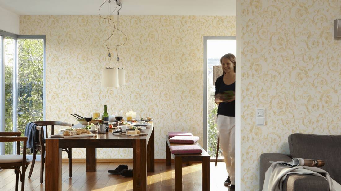 Великолепный набивной рисунок, много золота и дорогие материалы — это фирменный знак Versace, такой же, как и уже почти ставшие символом классики декоры Greek Key и Barocco.