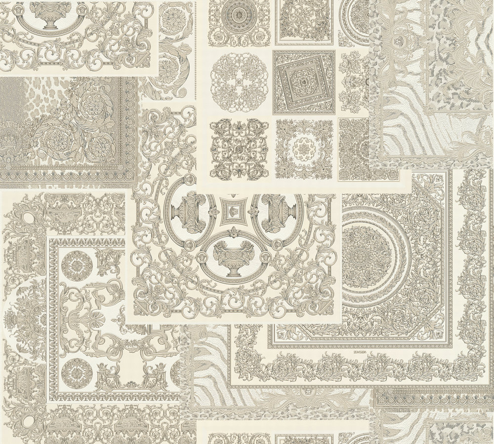 Великолепный набивной рисунок, много золота и дорогие материалы — это фирменный знак Versace, такой же, как и уже почти ставшие символом классики декоры Greek Key и Barocco.