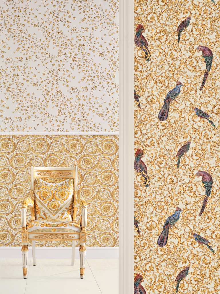 Великолепный набивной рисунок, много золота и дорогие материалы — это фирменный знак Versace, такой же, как и уже почти ставшие символом классики декоры Greek Key и Barocco.