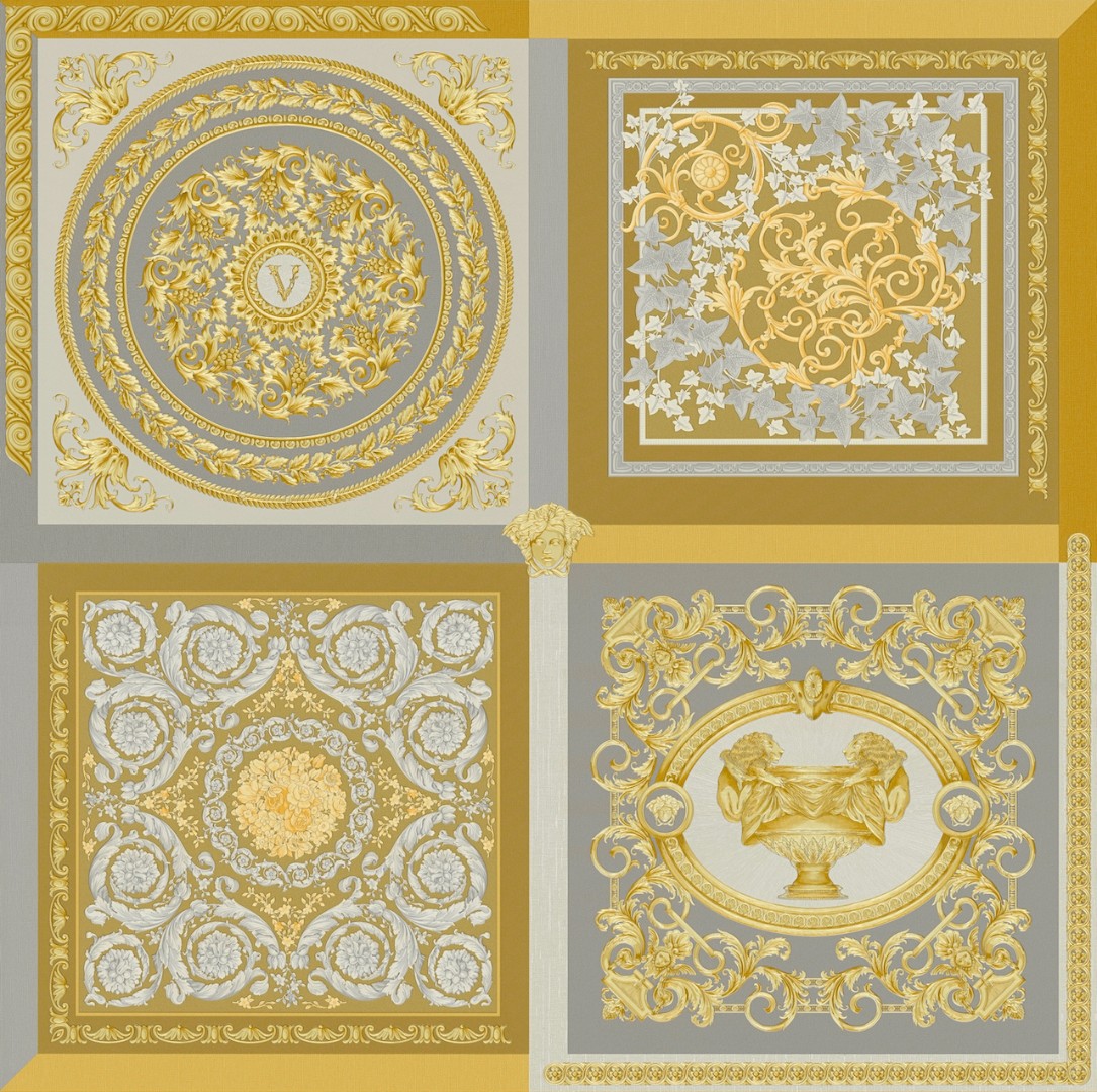 Великолепный набивной рисунок, много золота и дорогие материалы — это фирменный знак Versace, такой же, как и уже почти ставшие символом классики декоры Greek Key и Barocco.