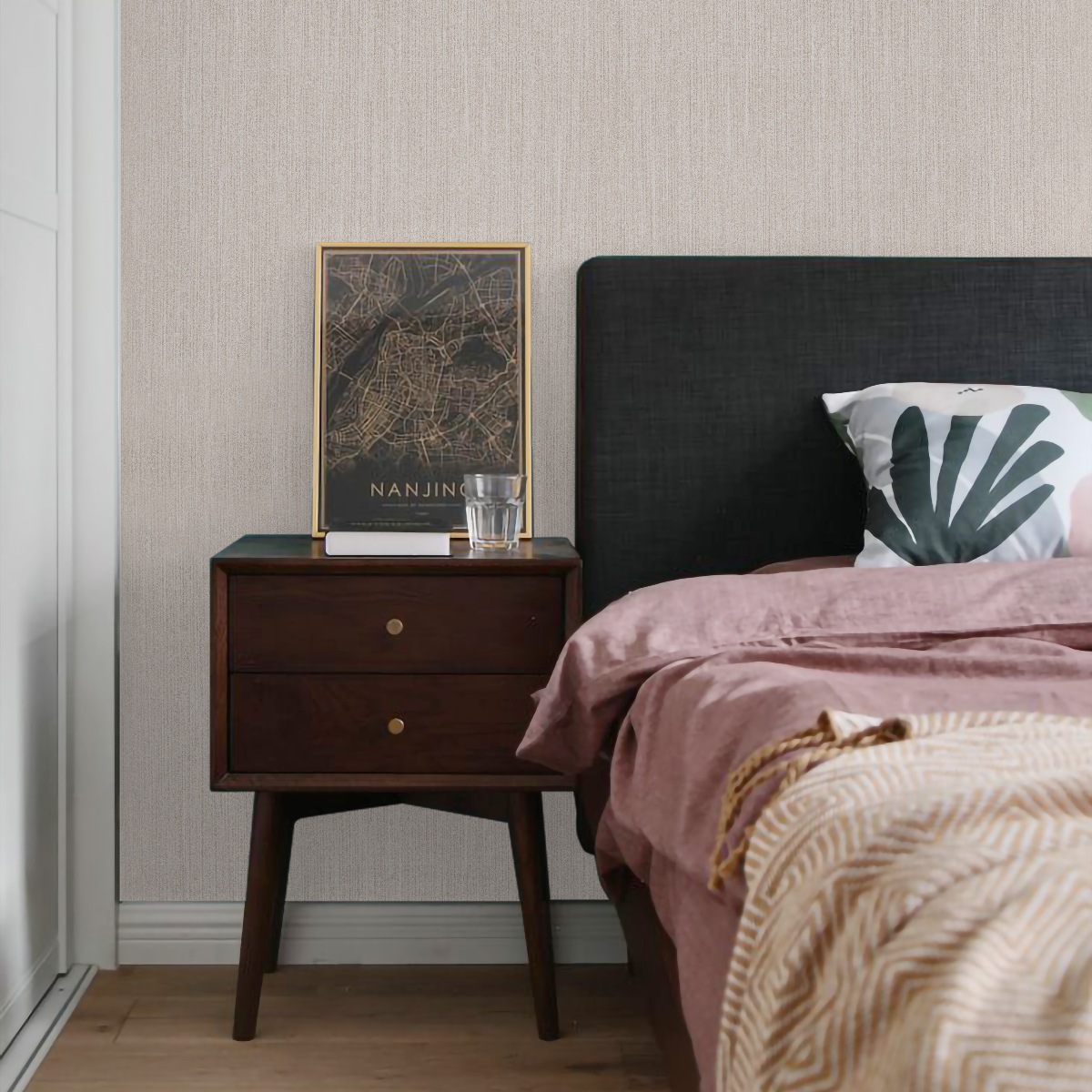 Тканевые обои — при производстве основы используется техника переплетения нитей (жаккардовое плетение). Далее ткань наклеивается на основу. Такие обои гораздо прочнее нитяных, так как переплетения нитей помогают скреплять полотно.