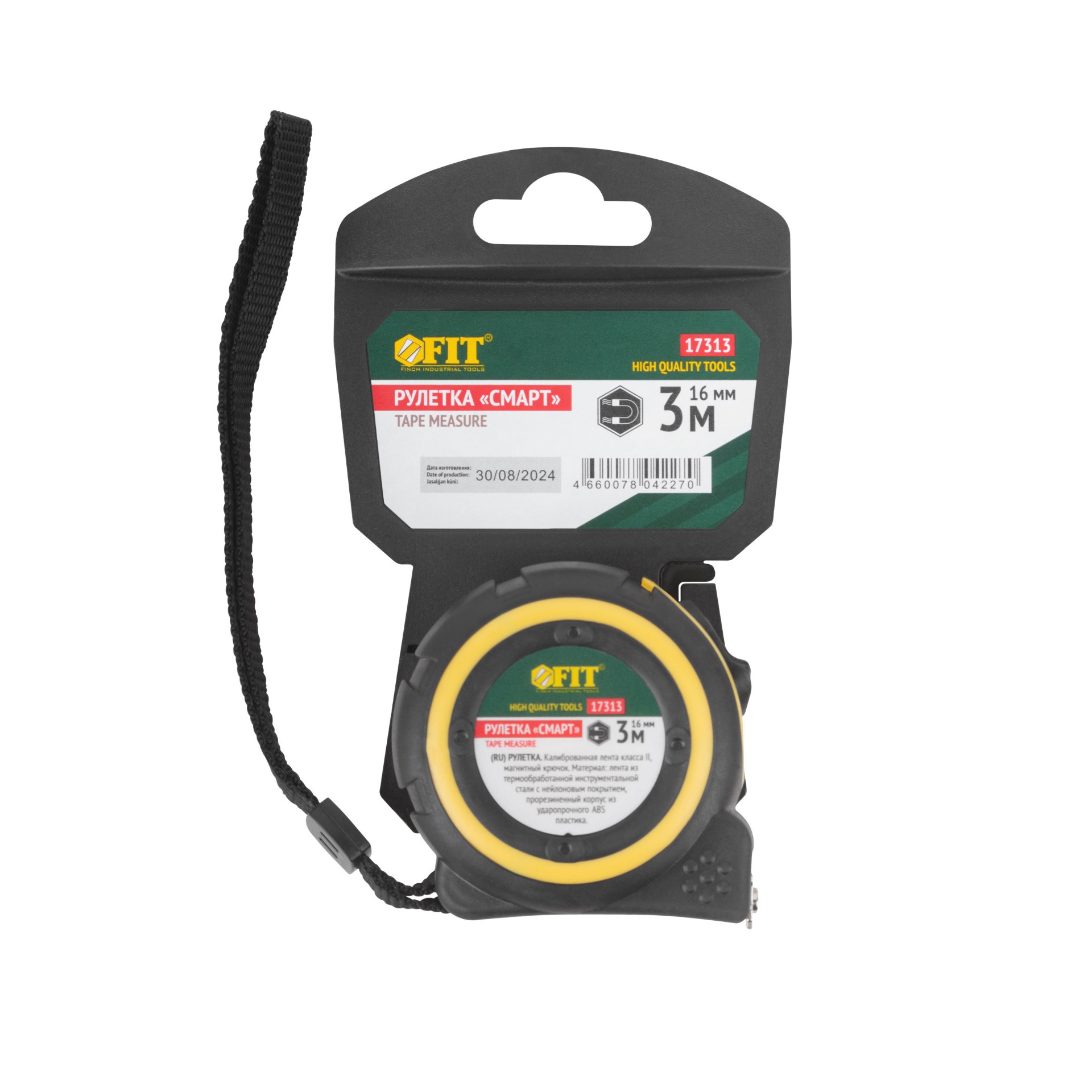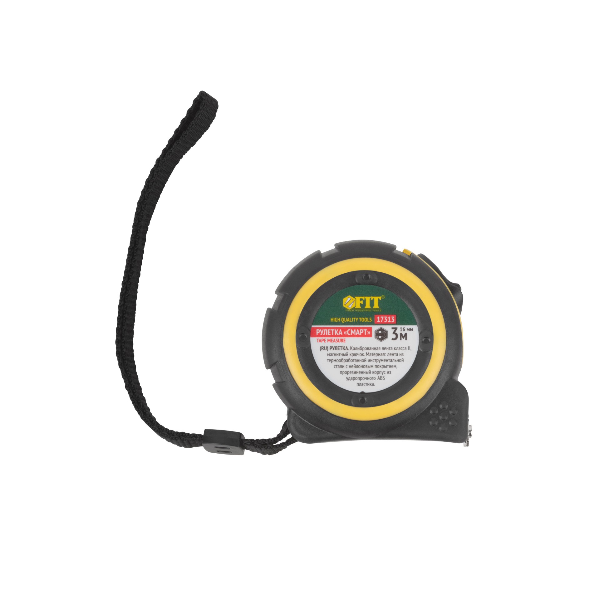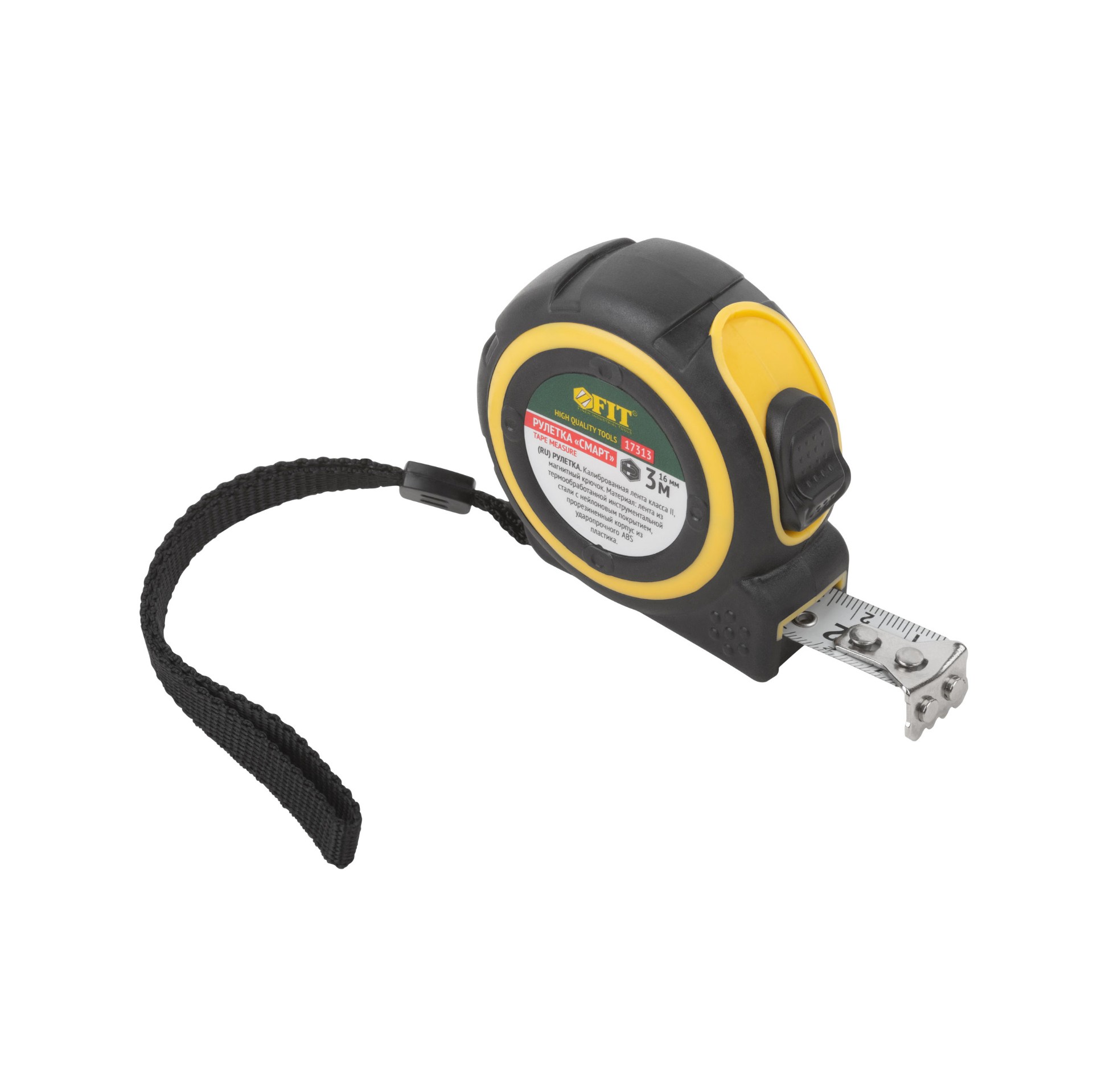 Рулетка Fit «Смарт», калибр.лента, нейлон.покр., магн.крючок, прорезиненный корпус 3 м х 16 мм