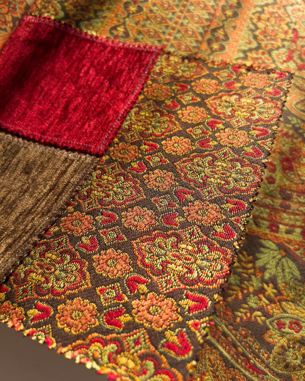 Etna — коллекция текстиля в этническом стиле от 5 Avenue. Ткани представляют собой завораживающий микс из мавританских, персидских и марокканских орнаментов. Каждый узор сплетен из множества мелких деталей, которые заставляют снова и снова рассматривать красочные полотна.