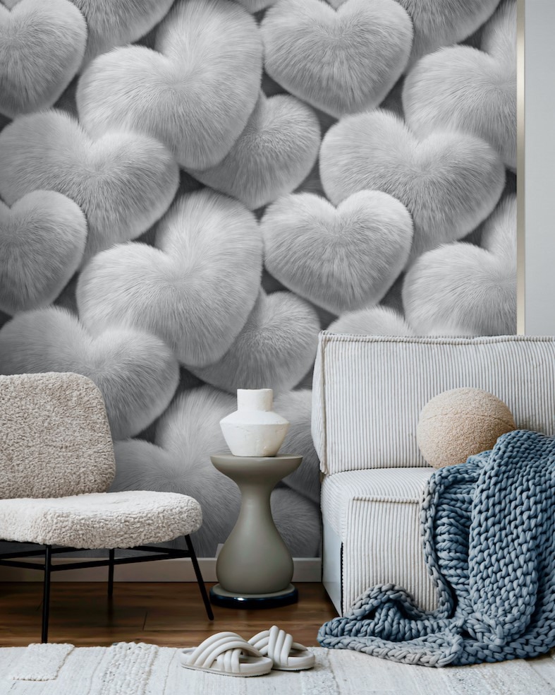 Что может быть нежнее меховых сердец от Palitra Home? Обои из коллекции Uff словно заключают Вас в свои пушистые объятия. Эффект объёма усиливает иллюзию мягкой поверхности, делая интерьер особенно уютным. Сложно представить меховые сердца без воплощения в нежном розовом цвете, но у нас есть и более спокойные, но не менее привлекательные варианты в бежевых и серых оттенках.