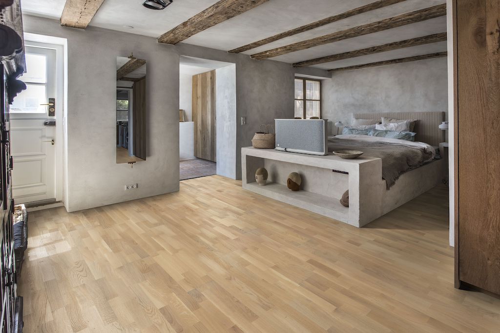 Вы можете выбрать паркет из дуба, ясеня или мербау, с покрытием маслом, глянцевым, сатиновым или матовым лаком.