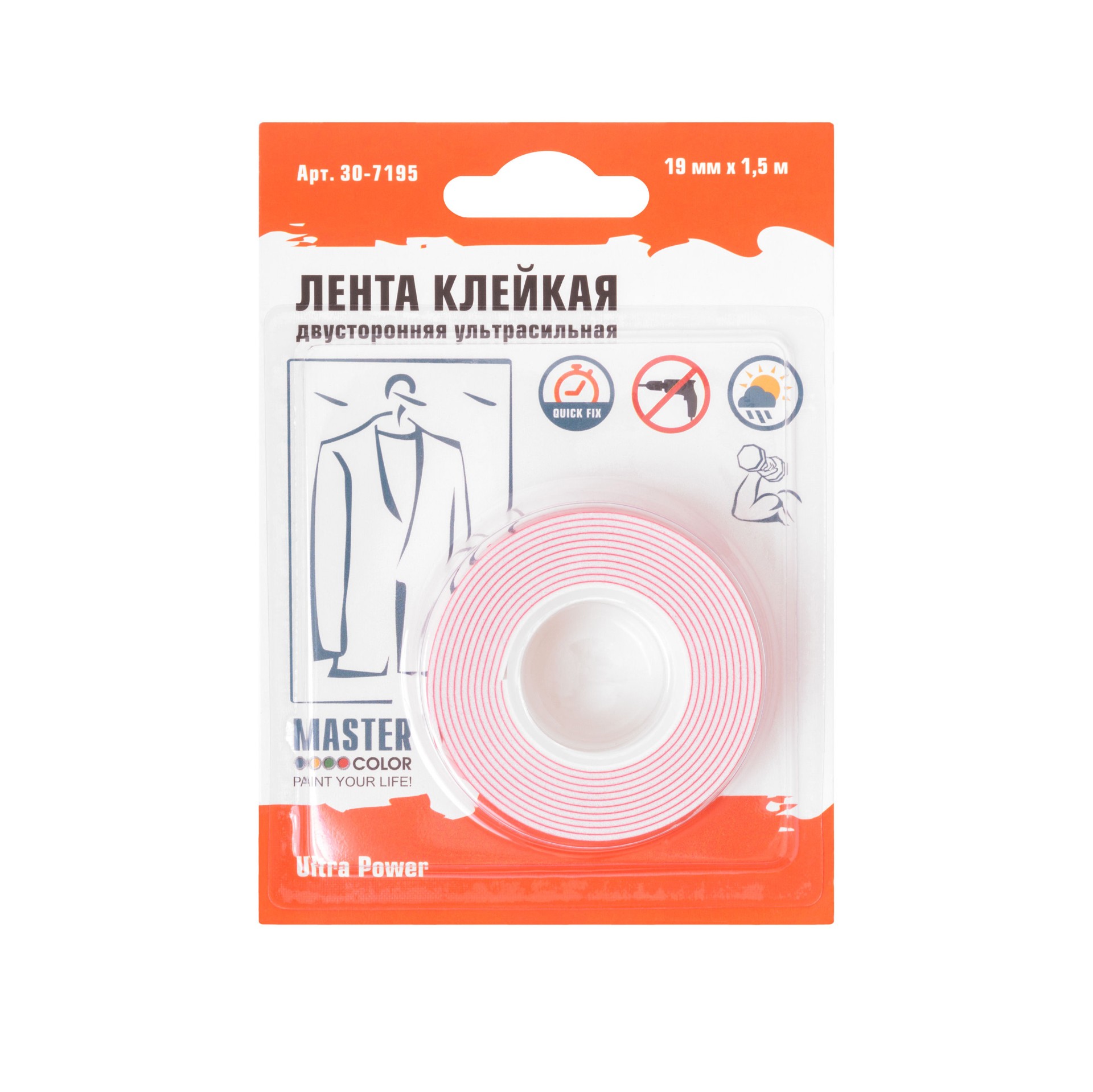 Клейкая лента Master Color двусторонняя ультра-сильная Master Color Ultra Power, 19 мм x 1.5 м