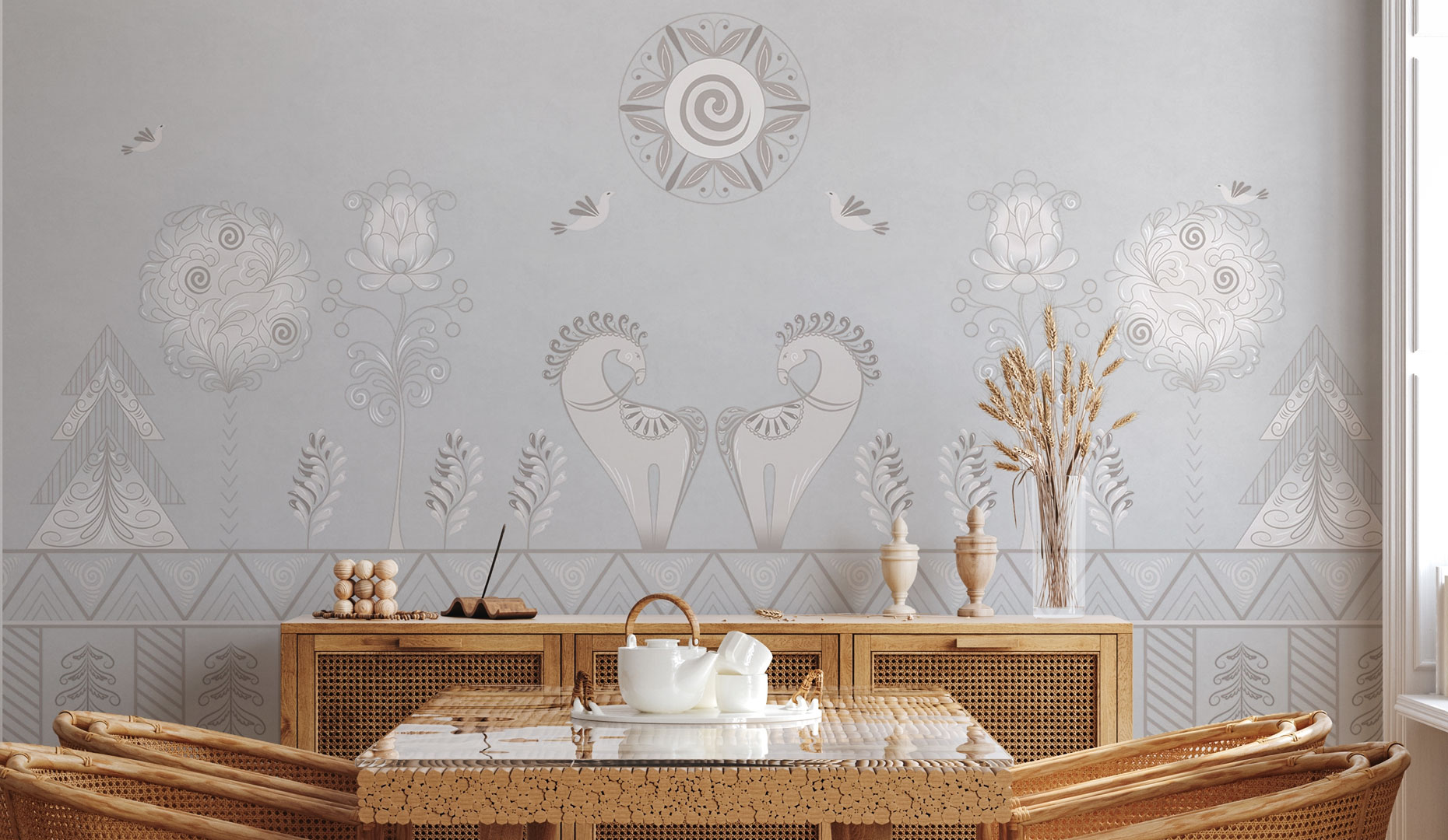 Сюда приятно зайти и здесь удобно выбирать. Все товары распределены по категориям и аккуратно расставлены. Обои, лепной декор, краска, фотообои, фрески, декоративные элементы, текстиль, напольные покрытия, плитка, клей и инструмент — все находится насвоем заранее подготовленном месте.