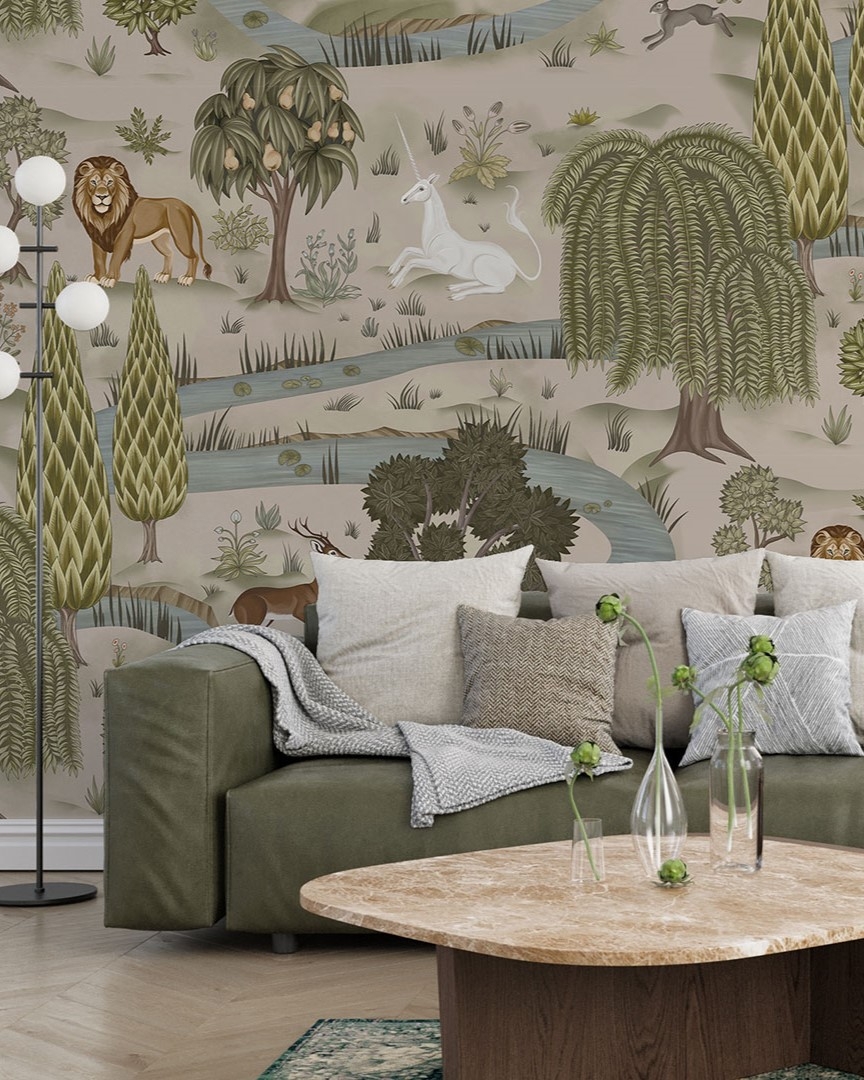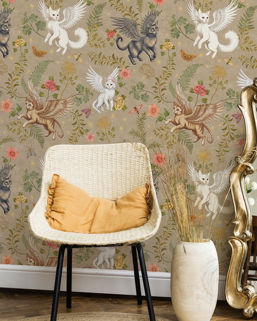 Gobelen — коллекция фресок от бренда Ortograf. Создатели вдохновлялись средневековыми гобеленами, благодаря котрым здесь появились узнаваемые единорги. А представителями современного мифа стали изображения крылатых кошек. В большинстве принтов присутствуют характерные для гобелена элементы: кайма с растительным орнаментом и одноплановая композиция, а также типичные для гобеленов образы животных, растений, рек и замков.