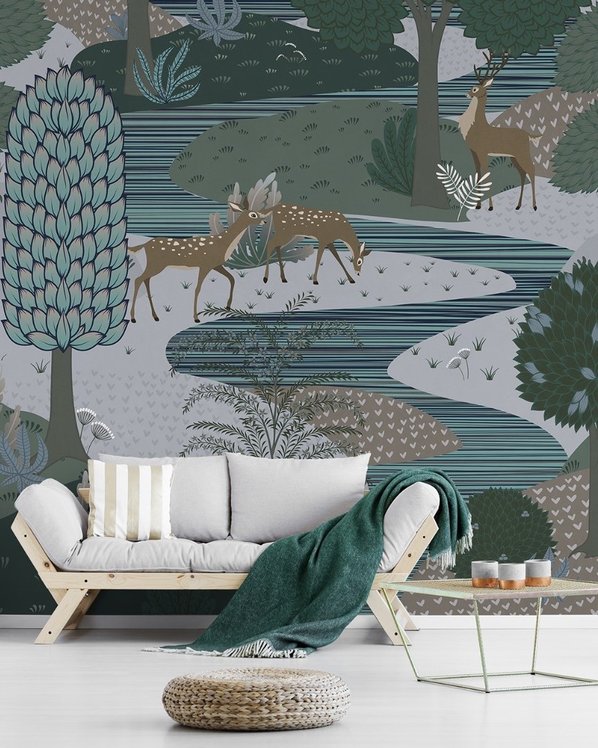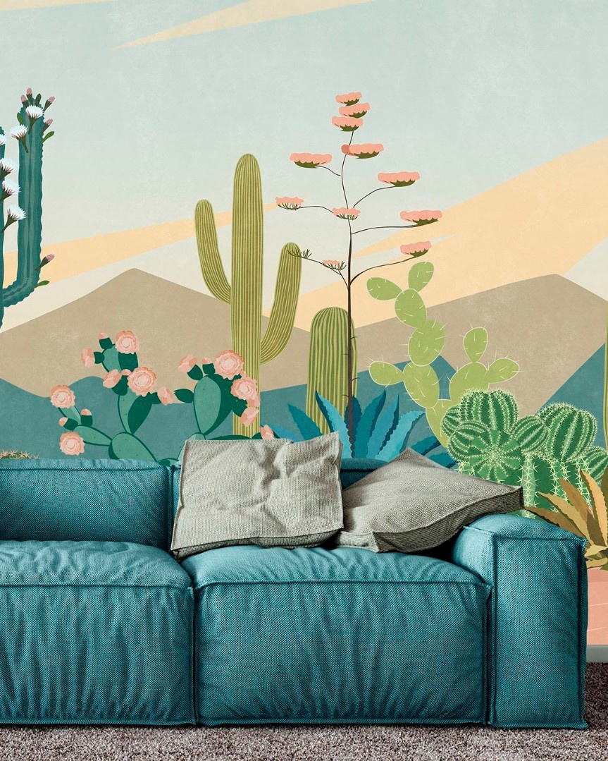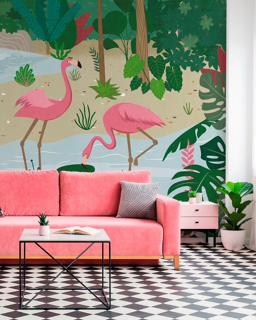 Природные сюжеты с отдыхающими людьми и животными погружают в атмосферу расслабленного летнего дня. Поддерживают этот эффект сочные леденцовые оттенки фресок.