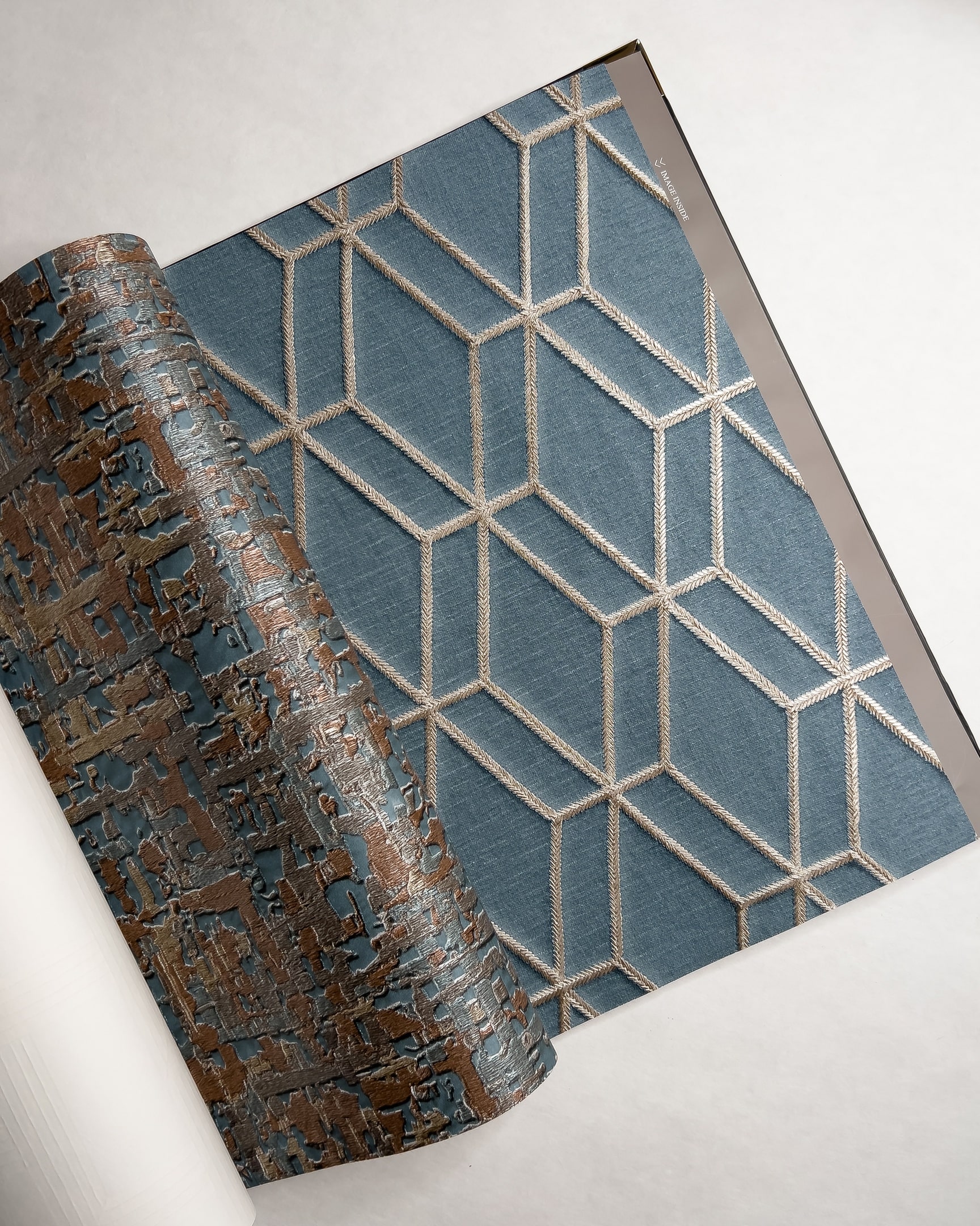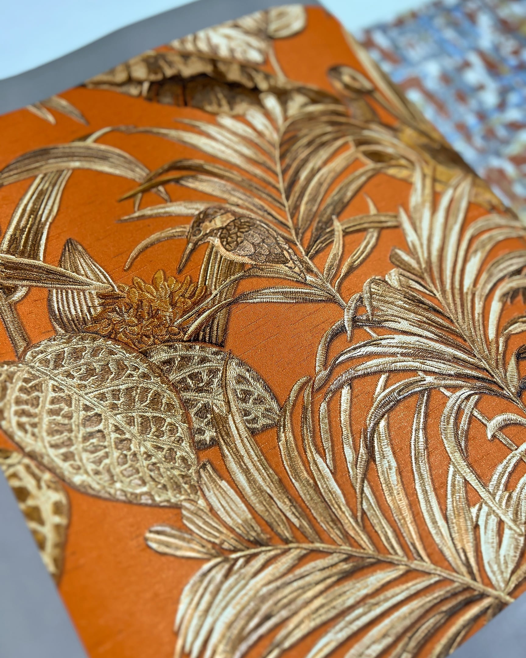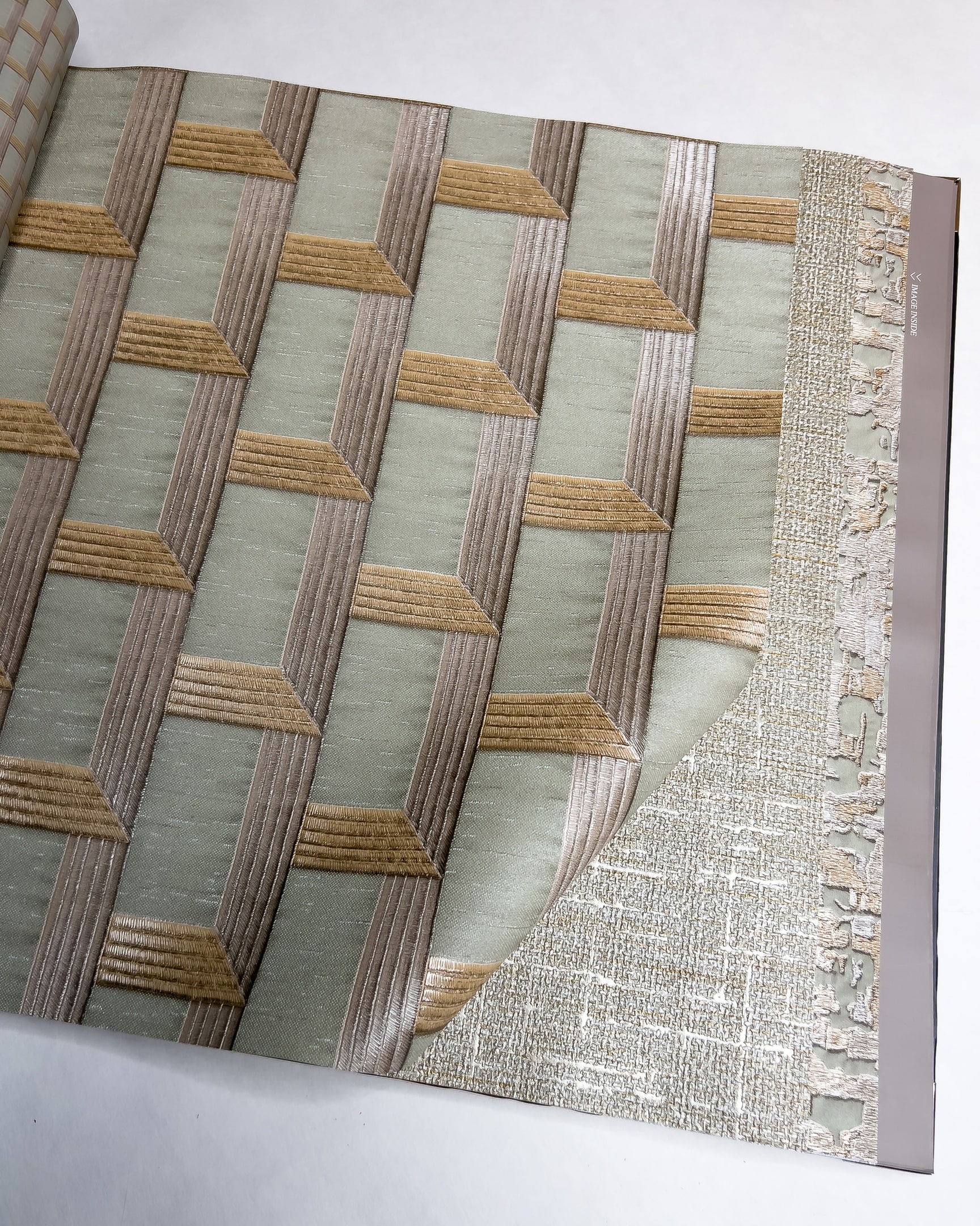Коллекция от бренда Solo с эффектом вышивки. Основа выглядит как атласное или шелковое полотно на котором «вышиты» ромбы, рисунок «решетка», серебристые нити или многоцветные птицы в окружении растений. Каталог представляет собой визуальное отражение роскошного сада, где есть и изящные ограды, и богатая растительность.