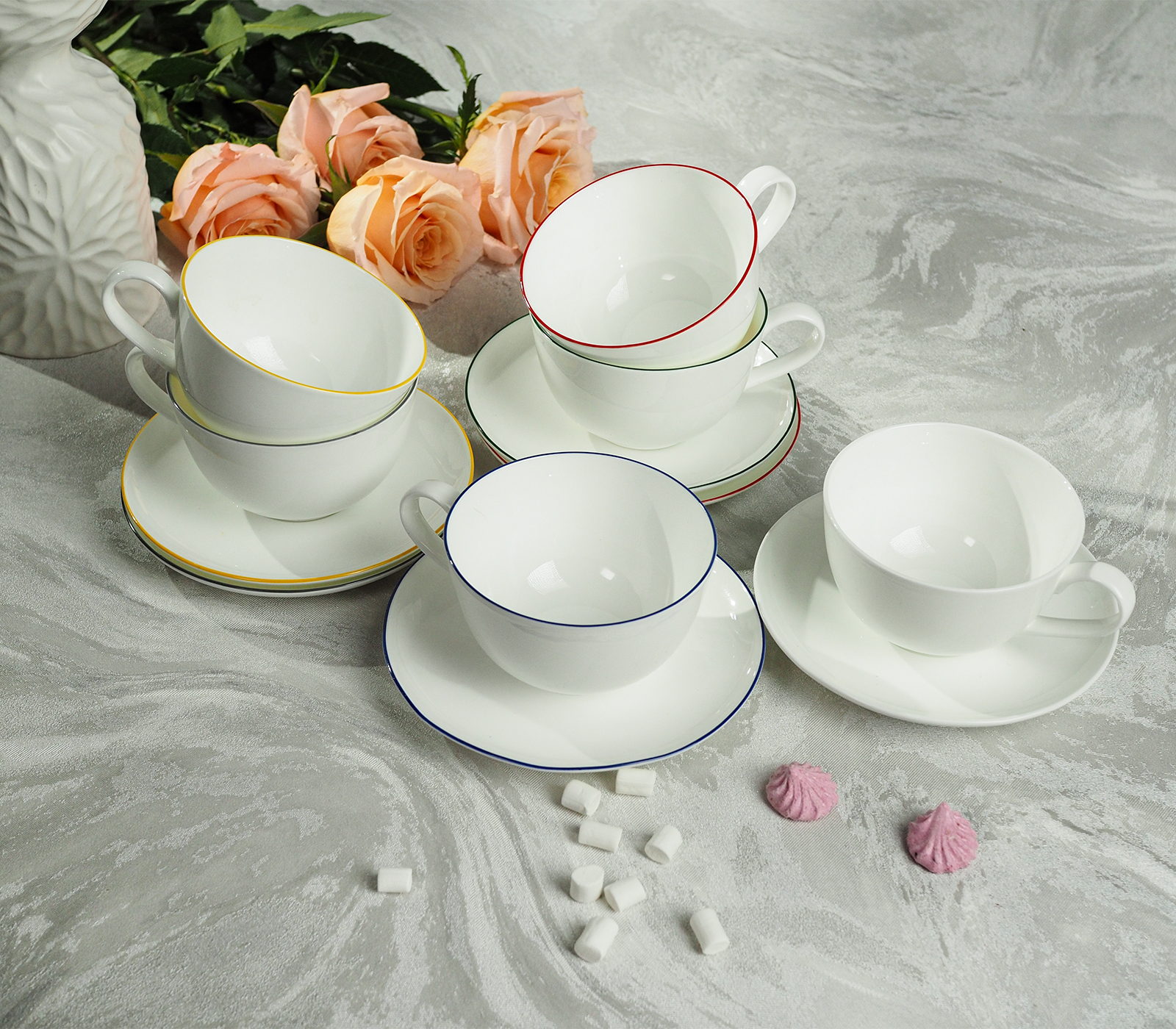 Набор чайных пар Stenova Home Symbol 300мл, 6шт. микс цвета