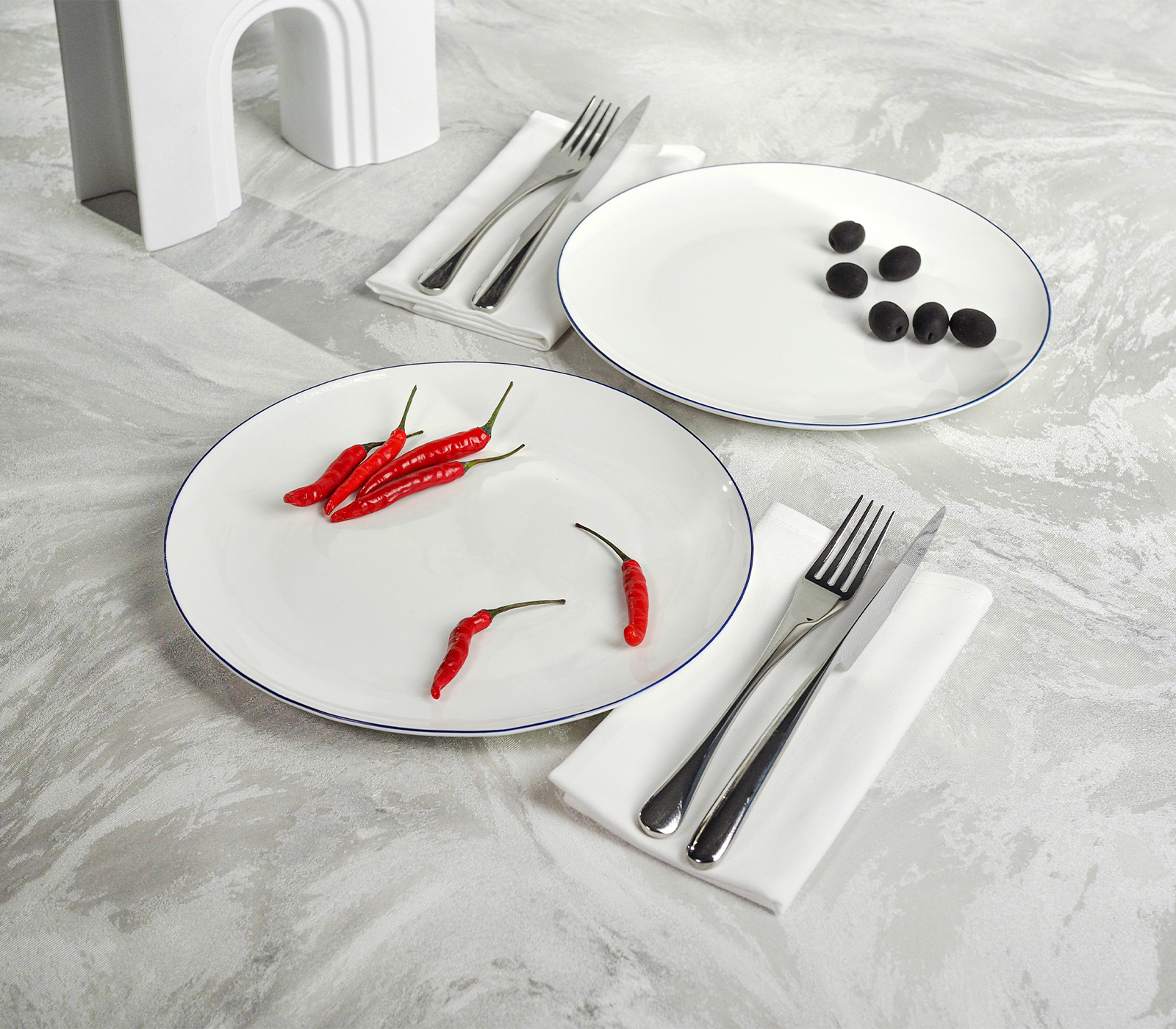 Тарелки Stenova Home обеденные Symbol 25см, 2шт. белый, кант синий