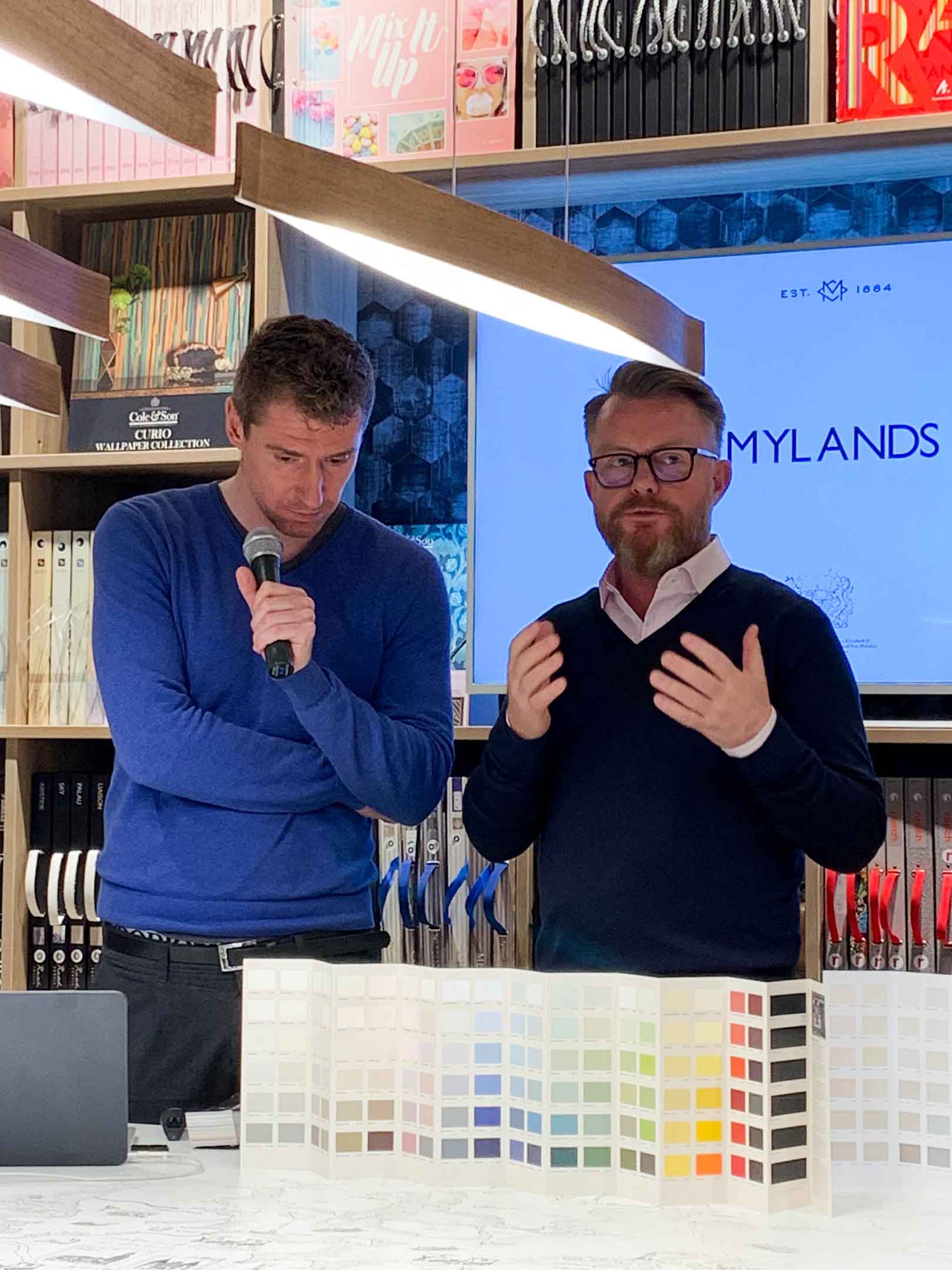 Случилось долгожданное! К нам приехал Доминик Майлэнд, потомок основателя фабрики Mylands. Это старейшее производство красок в Англии, к тому же награжденное Королевским орденом, и обладающее эксклюзивным правом поставок краски ко двору Её Величества.