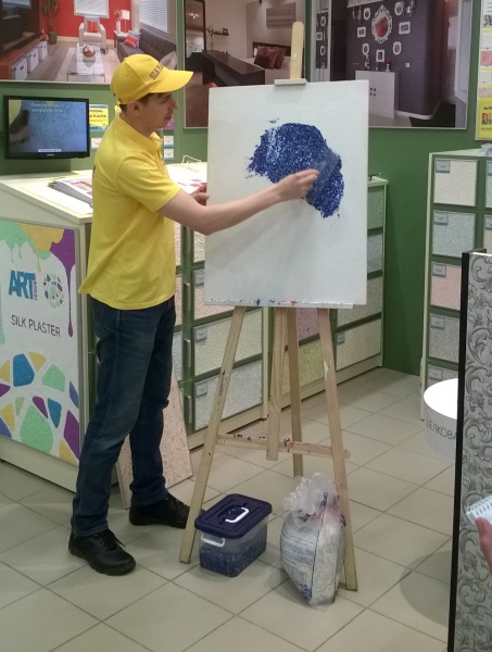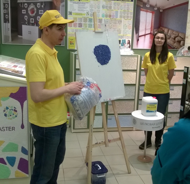 30 января в новом магазине «Обойкин» в ТРК «Гранд Каньон» в Санкт-Петербурге прошел мастер-класс по нанесению жидких обоев Silk Plaster. Под руководством представителей фабрики сотрудники магазина опробовали декоративную штукатурку в деле и убедились, что материал обладает пластичностью и поэтому легко наносится на поверхность. Получается покрытие без швов с приятной шелковой поверхностью.