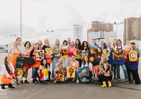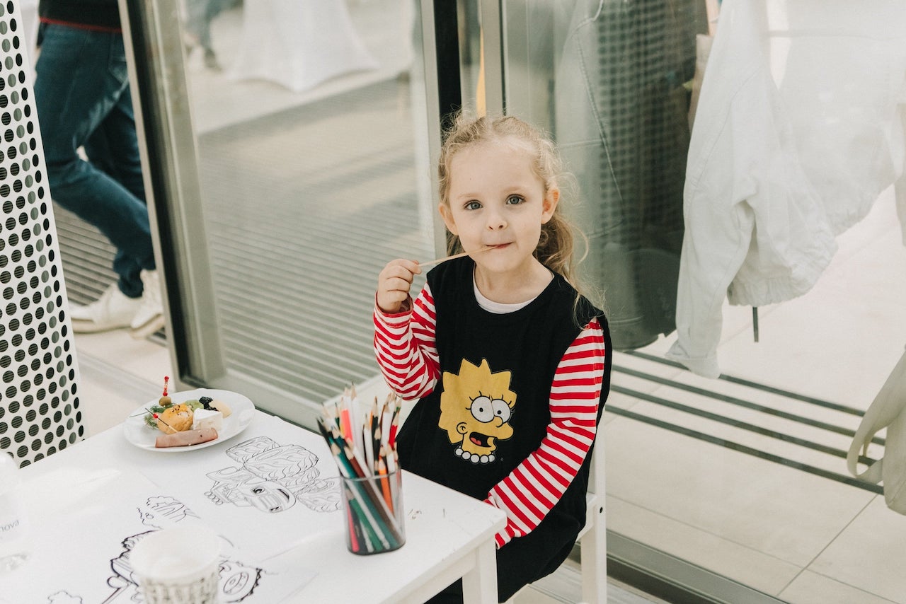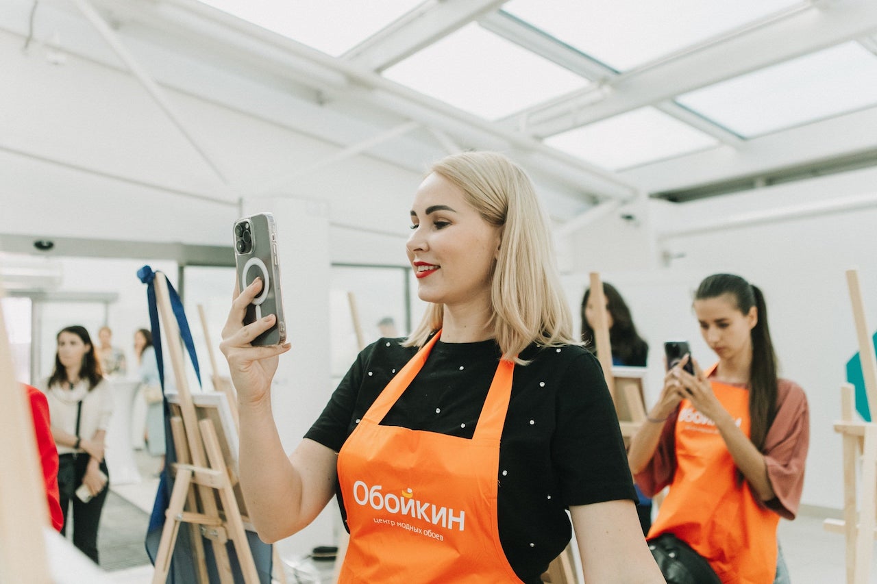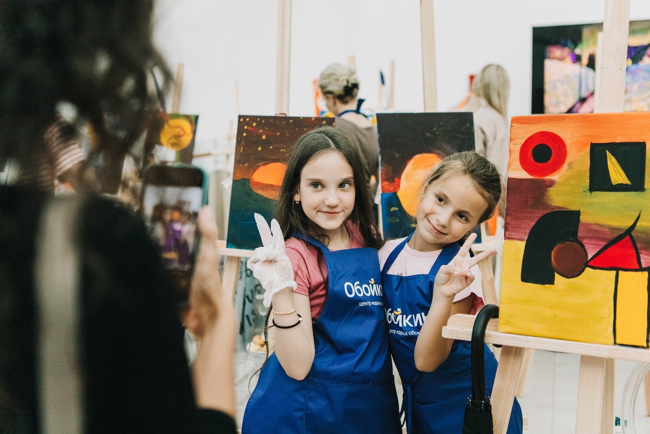 На этом наша креативная деятельность не закончилась — мы все вместе расписали большую двухметровую фотозону, превратив безликую белую поверхность в произведение искусства.