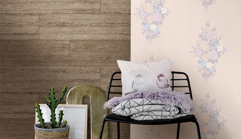 Фактуры коллекции — это технологичное перенесение текстур современных материалов (метал, пластик, дерево, бетон) с незаконченной отделкой (необработанные доски, бетонные плиты, кирпич) на флизелин.