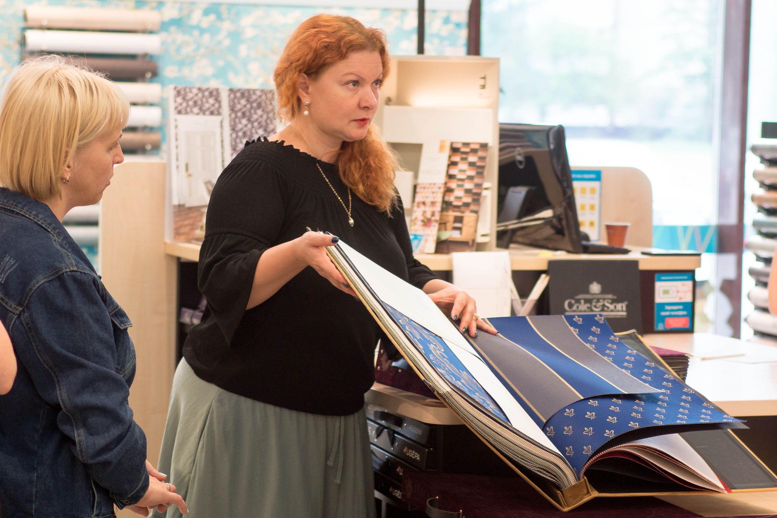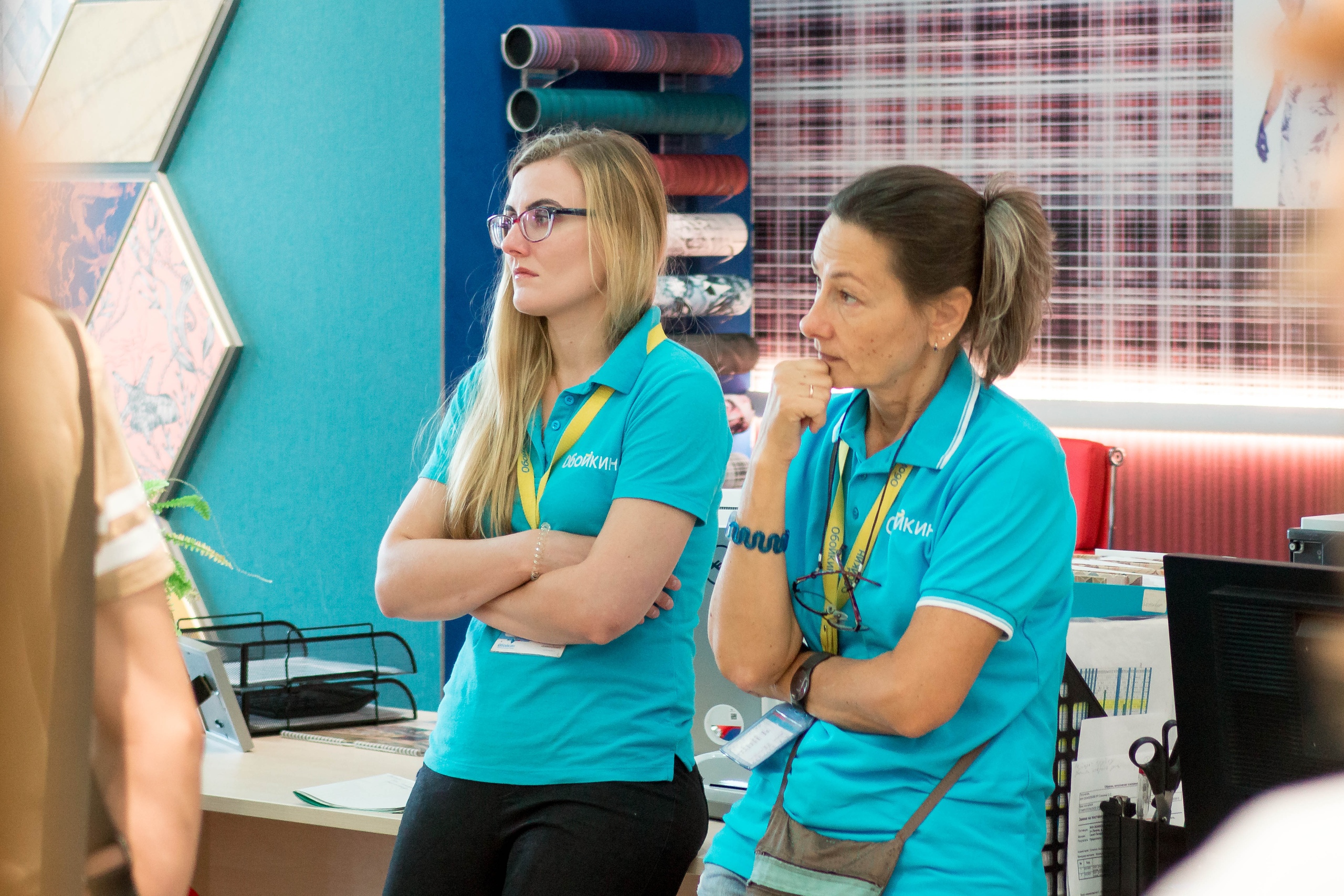 В магазине на Байконурской 12 прошёл обучающий семинар по обоям Epoca. Текстильные настенные покрытия — продукт, который требует особенно внимательного подхода со стороны консультантов. В коллекциях Epoca есть рулонные обои и бесшовные полотна. Представитель компании рассказала о тонкостях работы с теми и другими покрытиями: как правильно подсчитать количество погонных метров и как ухаживать за такими обоями.