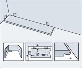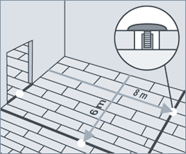 Рекомендуется укладывать ламинат по направлению падения света из окна. В помещениях длиной более 8 м и/или шириной более 6 м необходимо предусмотреть деформационные зазоры не менее 10 мм. После укладки ламинированных полов деформационные зазоры закрываются специальным профилем.