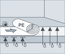 При укладке ламината необходимо обеспечить гидро-пароизоляцию основания (полиэтиленовая плёнка 0,2 мм). После этого расстилается подложка для компенсации неровностей основания и обеспечения комфорта при эксплуатации (1-3 мм). Укладка гидро-пароизоляции и подложки осуществляется внахлёст не менее 20 см или встык при помощи клейкой ленты.
