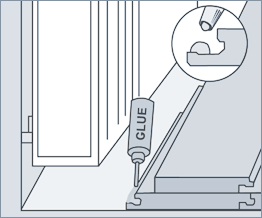 Нанести клей на выступ замка. Сдвинуть плашку под выступающую помеху и, плотно прижав, соединить с плашко предыдущего ряда.