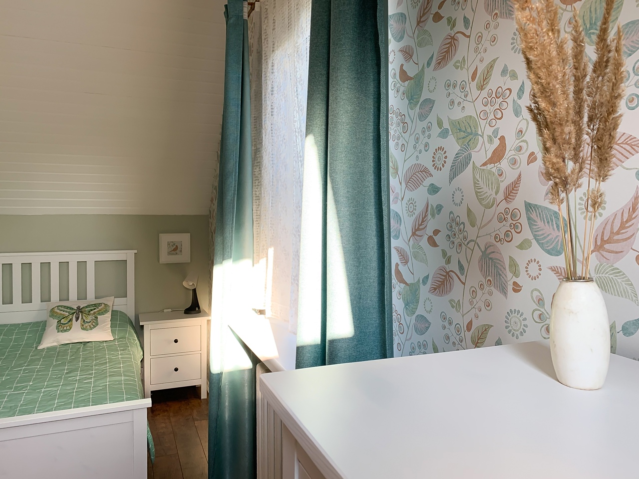 Ещё одна коллекция от Borastapeter. Оттенки полотен выглядят немного выцветшими, из-за чего создается расслабленная атмосфера загородного дома. На обоях изображены папоротники, нежные веточки цветущих яблонь, скандинавские луга и простые, но самые душевные полевые цветы. Здесь есть всё, за что мы любим шведские обои: гармония в рисунке и цветовой палитре, отсутствие помпезности и внимание к флоре умеренных широт.